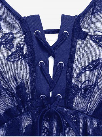 Plus Size Butterfly Lace Overlay Lace-up 2 in 1 Tee - Deep Blue - 1x | Us 14-16
