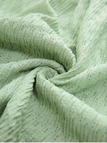 Plus Size Butterfly Printed Floral Lace Embroidered Textured Ruched Top - Green - L | Us 12