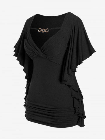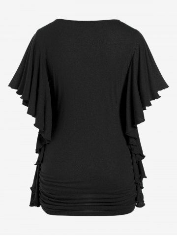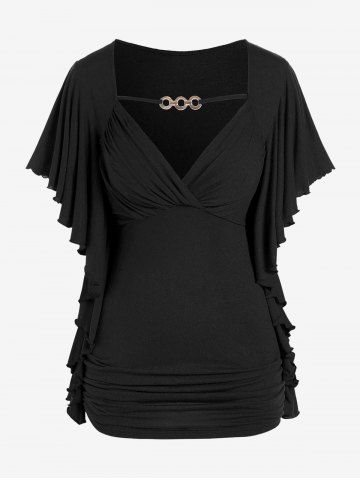 b*****45Plus Size Butterfly Sleeves Flounce Ruched Solid Surplice TeeColor: BLUE Size: L | US 12It's beautiful! And soft. I love this top. It makes me feel like an elven princess!