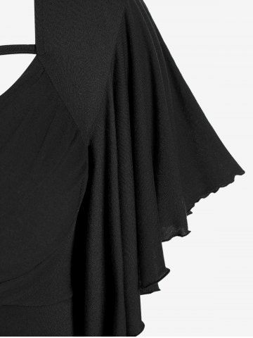 S*****h5Plus Size Butterfly Sleeves Flounce Ruched Solid Surplice TeeColor: BLUE Size: 2X | US 18-20Fabric is soft and fit is perfect. I feel sexy and confident if the clothes I get from here!