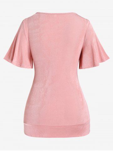 Plus Size Butterfly Sleeves Ruched Chain Cowl Neck Blonsou Top - Light Pink - L | Us 12