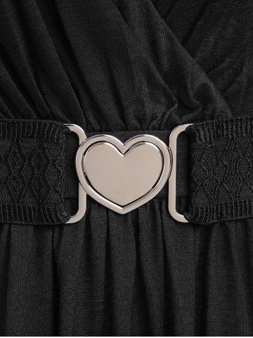 Plus Size Chain Panel Belted Butterfly Sleeve Surplice Top - Black - M | Us 10