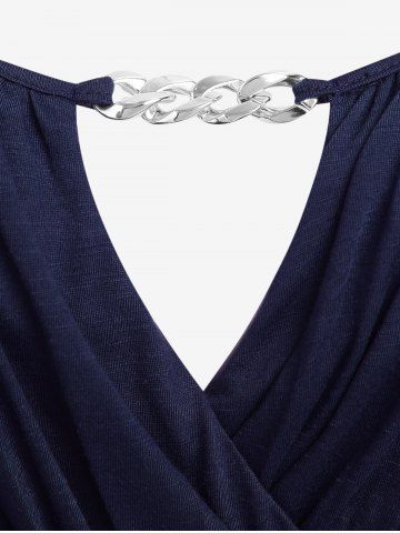 Plus Size Chain Panel Belted Butterfly Sleeve Surplice Top - Blue - L | Us 12