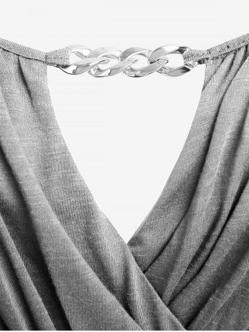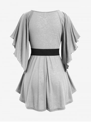 Plus Size Chain Panel Belted Butterfly Sleeve Surplice Top - Light Gray - 4x | Us 26-28
