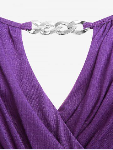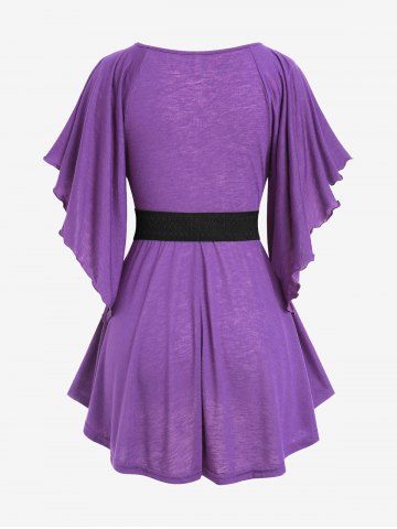 Plus Size Chain Panel Belted Butterfly Sleeve Surplice Top - Purple - 4x | Us 26-28