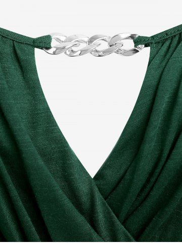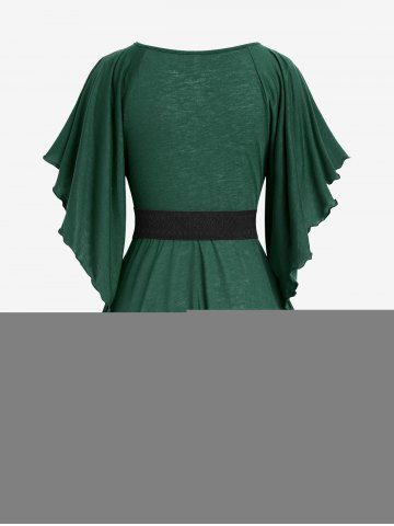 Plus Size T-shirts > Plus Size Chain Panel Belted Butterfly Sleeve Surplice Top