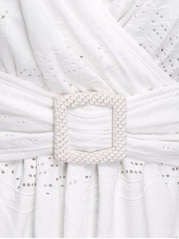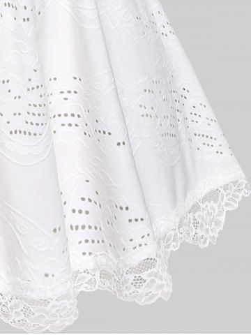 Plus Size Chain Panel Surpliced Hollow Out Lace Up Buckle Short Sleeves T-Shirt - White - 4x | Us 26-28