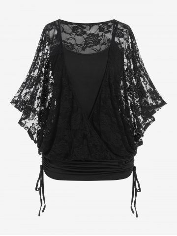 m*****45Plus Size Floral Lace Panel Crossover Ruched Cinched Butterfly Sleeves 2 In 1 TopColor: BLUE Size: 1X | US 14-16Received this very beautifully romantic navy blue lace one piece tank top. This tank top has beautiful flutter sleeves with ties on each side. Materials are both soft and comfortable to wear. Fits me perfectly, true to size. Thanks Rosegal.