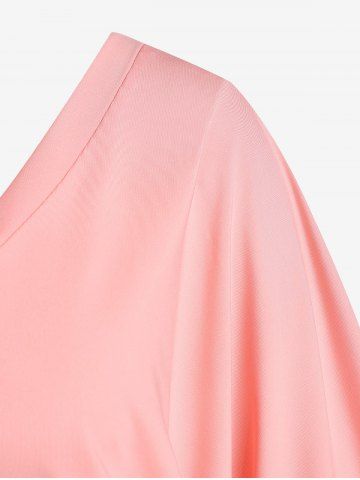 k*****c4Plus Size Batwing Sleeves Solid V Neck TeeColor: BLACK Size: 5XLtrès beau tissu les manches sont pas identiques mais très bien et confortable