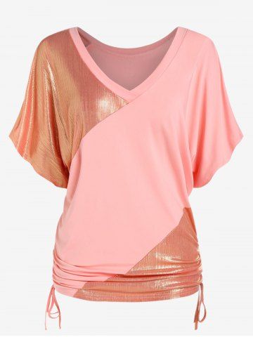 k*****c4Plus Size Batwing Sleeves Solid V Neck TeeColor: BLACK Size: 5XLtrès beau tissu les manches sont pas identiques mais très bien et confortable