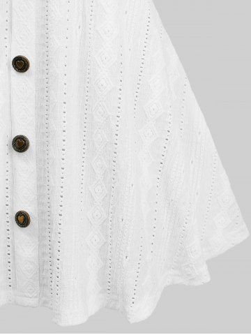 Plus Size Cold Shoulder Puff Sleeves Lace Trim Full Button Jacquard Embroidery Pointelle Hollow Out Solid Tank Top - White - 4x | Us 26-28