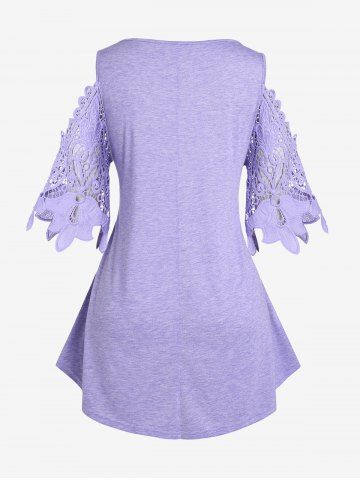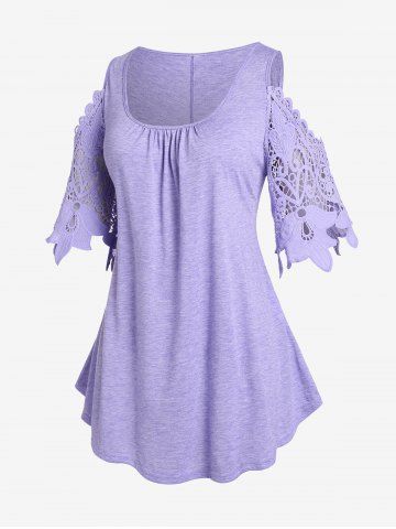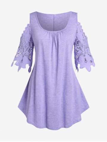 g*****e5Plus Size & Curve Lace Panel Ruched Cold Shoulder TeeColor: LIGHT PURPLE Size: 2XVery beautiful. great fit. Feels wonderful. fast shipping great service from one the best clothing sites around.