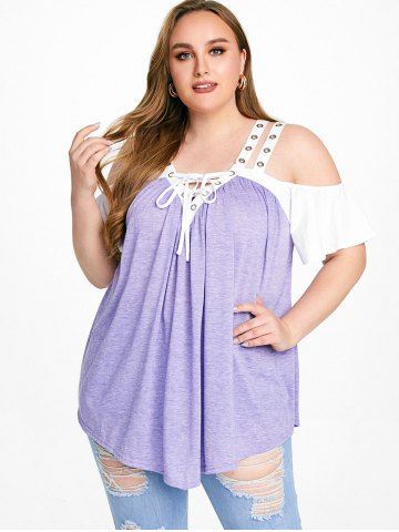 B*****b5Plus Size & Curve Ribbed Open Shoulder T-shirt and Lace Bralette Top SetColor: LIGHT PURPLE Size: 3XLovely shade of purple summer top with a bralette to wear underneath so you have a peek of lace showing to catch the eye! The fabric is so soft and comfortable, perfect fit, shipped fast and packaged nicely. High quality design and made very well!