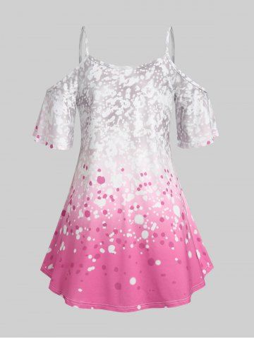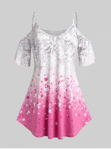 Plus Size&Curve Ombre Color Cold Shoulder Tee - Light Pink - 2x