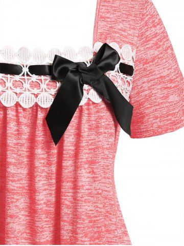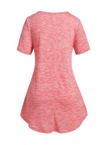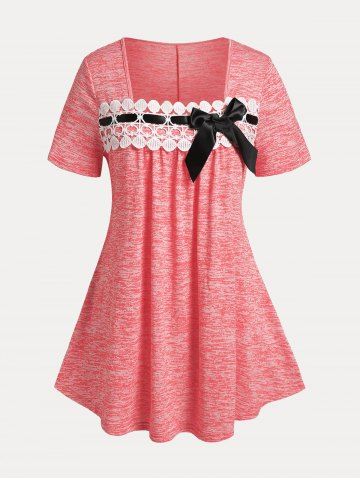 Plus Size T-shirts > Plus Size & Curve Space Dye Bowknot Curved Hem Applique Panel Tee