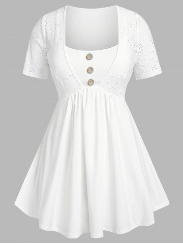 Plus Size Eyelet Short Sleeve Skirted Tunic Tee - White - 3x