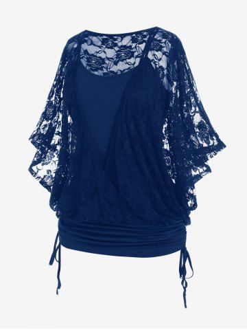 m*****45Plus Size Floral Lace Panel Crossover Ruched Cinched Butterfly Sleeves 2 In 1 TopColor: BLUE Size: 1X | US 14-16Received this very beautifully romantic navy blue lace one piece tank top. This tank top has beautiful flutter sleeves with ties on each side. Materials are both soft and comfortable to wear. Fits me perfectly, true to size. Thanks Rosegal.