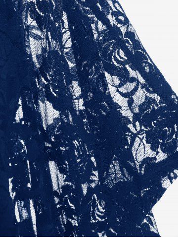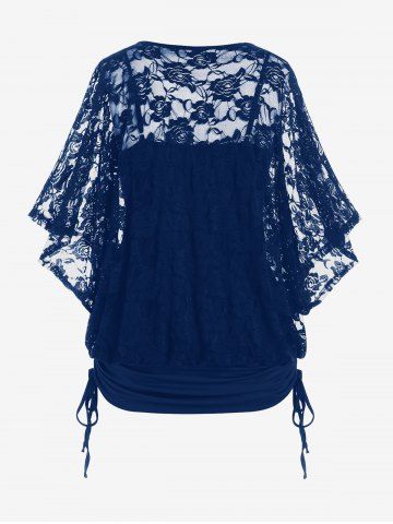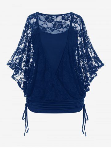 m*****45Plus Size Floral Lace Panel Crossover Ruched Cinched Butterfly Sleeves 2 In 1 TopColor: BLUE Size: 1X | US 14-16Received this very beautifully romantic navy blue lace one piece tank top. This tank top has beautiful flutter sleeves with ties on each side. Materials are both soft and comfortable to wear. Fits me perfectly, true to size. Thanks Rosegal.