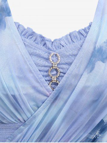 d*****84Plus Size Flowers Watercolor Painting Print Surplice Chain Panel Ruched Ruffles Tulip Hem TopColor: LIGHT BLUE Size: 4X | US 26-28love this one but the stitching was coming apart. I can't seem to get customer service to assist with a return and I'd really like to exchange for one that is fully stitches up
