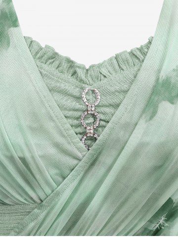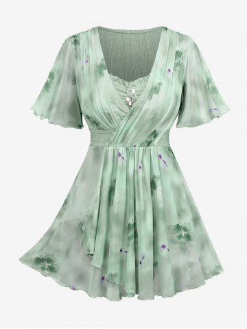 d*****84Plus Size Flowers Watercolor Painting Print Surplice Chain Panel Ruched Ruffles Tulip Hem TopColor: LIGHT BLUE Size: 4X | US 26-28love this one but the stitching was coming apart. I can't seem to get customer service to assist with a return and I'd really like to exchange for one that is fully stitches up