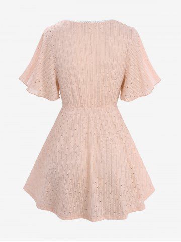 g*****34Plus Size Flutter Sleeve Butterfly Decor Crossover Bust Pointelle Hollow Out Solid TopColor: LIGHT PINK Size: 4X | US 26-28I love this top! it fits exactly how I like and I absolutely love the glitter on it!! I definitely recommend this top