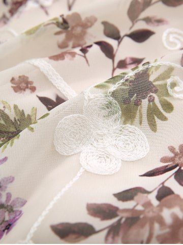 Plus Size Flutter Sleeves Colorful Floral Embroidered Ruffles Layered Lace Trim 2 in 1 Chiffon Belted Top - Light Coffee - 1x | Us 14-16