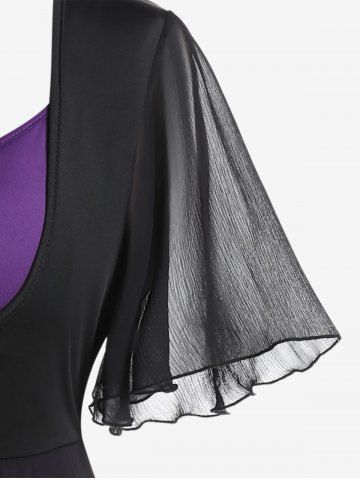 Plus Size T-shirts > Plus Size Flutter Sleeves Twist Colorblock 2 in 1 Tee
