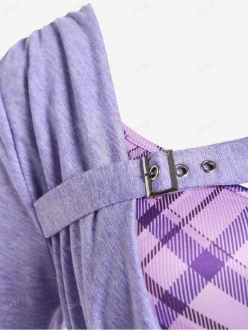 c*****15Plus Size Heart Plaid Buckle Draped Ruched Short Sleeves TeeColor: LIGHT PURPLE Size: 4X | US 26-28by far my one of my favorite tops. The tank top sat a little low for my liking so I had to take the straps up a little, but overall a very comfortable shirt.