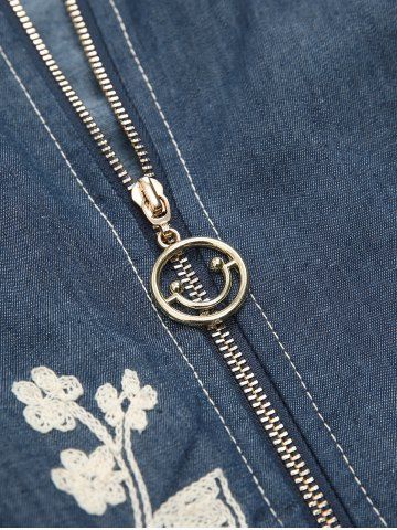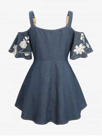 Plus Size Jacquard Embroidery Flowers Rivet Zip Up Leaf Buckle Cold Shoulder T-shirt - Blue - 2x | Us 18-20