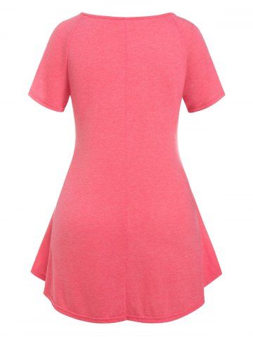 Plus Size Lace Panel Raglan Sleeve Tee - Light Pink - 4x