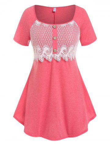Plus Size T-shirts > Plus Size Lace Panel Raglan Sleeve Tee