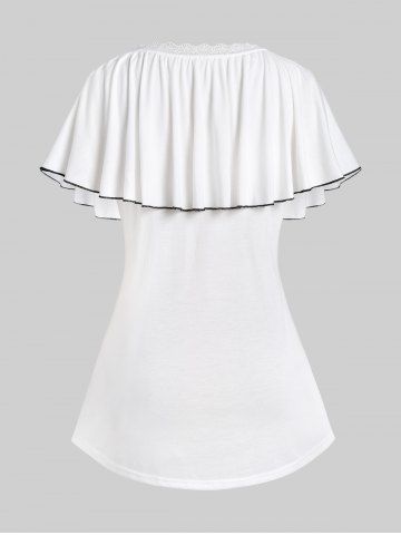 R*****r5Plus Size Lace Trim Flounce V Neck Capelet TopColor: WHITE Size: 4X | US 26-28This item fits wonderful love it so much thank you