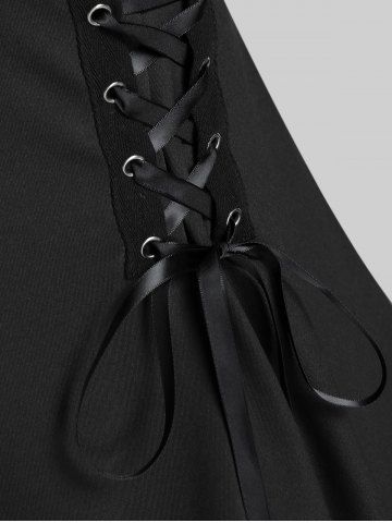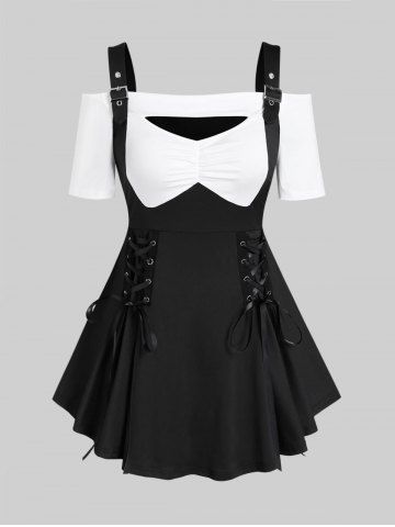 Plus Size Lace Up Buckles Two Tone Cold Shoulder T Shirt - Black - 1x | Us 14-16