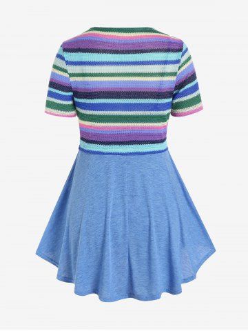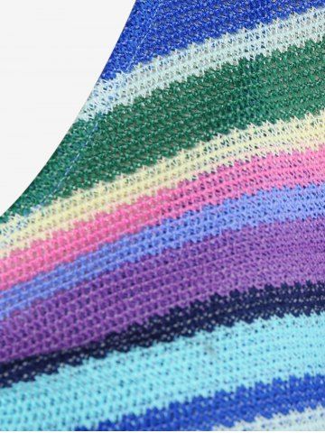 j*****k5Plus Size Lace Up Striped Knitted Top and Solid Tank Top SetColor: BLUE Size: 3X | US 22-24This is such a fun top. With all the colors in the sweater it can go with anything and the way it flares out at the bottom is so comfy.