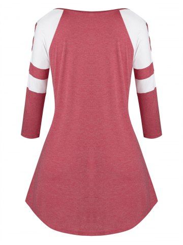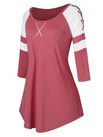 B*****b5Plus Size Lace Up Two Tone Curved Tunic TeeColor: RED Size: 3XGreat value...would definitely recommend! The fabric is so soft and comfortable...Beautiful, exactly as pictured. Amazing quality! fits exactly by size! Cute top!