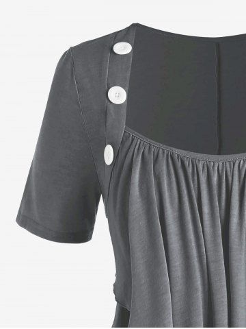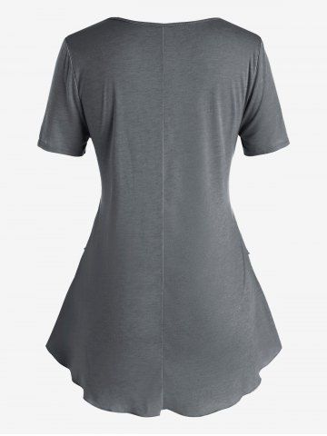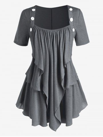 Plus Size Layered Draped Buttoned Round Hem Tunic Tee - Gray - 1x