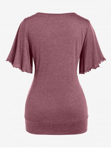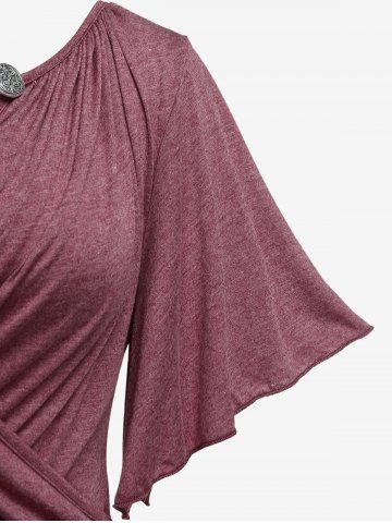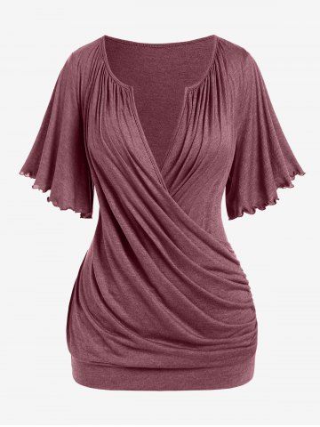 Plus Size Lettuce Ruched Chain Embellished Plunging Blouson Tee - Deep Red - 2x | Us 18-20