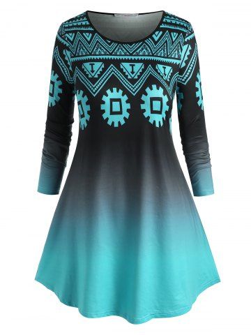 Plus Size T-shirts > Plus Size Ombre Color Geometry T Shirt