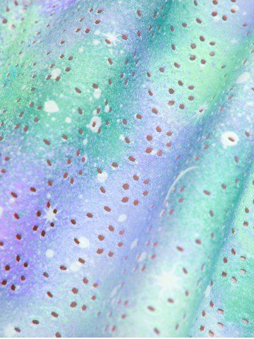 s*****e4Plus Size Ombre Tie Dye Galaxy Moon Star Print Twist Chains Hollow Out Cold Shoulder TopColor: PURPLE Size: 3X | US 22-24I accidentally bought two of these shirts forget that I ordered on already, the first one was two big for me so I'm giving it to my sister. The one that is still in transit will fit me better.