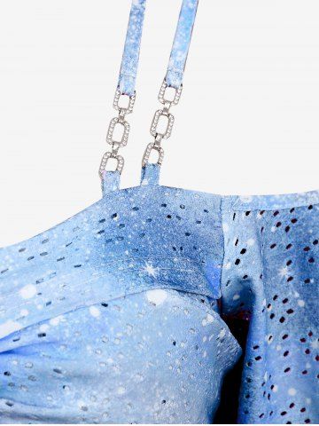 Plus Size Ombre Tie Dye Galaxy Moon Star Print Twist Chains Hollow Out Cold Shoulder Top - Blue - L | Us 12