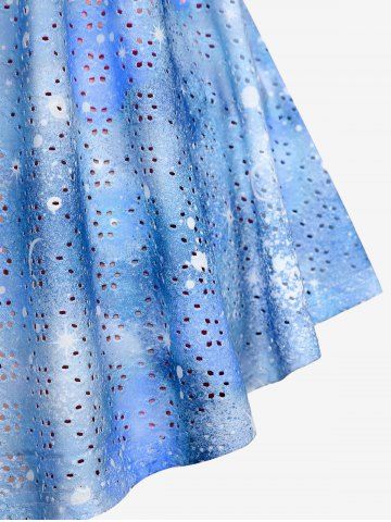 Plus Size Ombre Tie Dye Galaxy Moon Star Print Twist Chains Hollow Out Cold Shoulder Top - Blue - 2x | Us 18-20