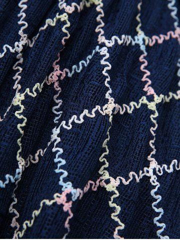Plus Size Plaid Embroidery Mesh Rivet Lace Trim Surplice Twist 2 In 1 Top - Deep Blue - 4x | Us 26-28