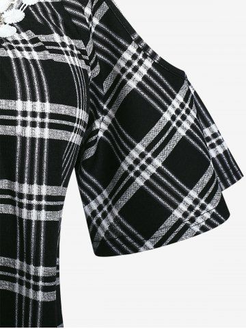 m*****15Plus Size Plaid Flower Trim Cold Shoulder T ShirtColor: BLACK Size: 3X | US 22-24très bien