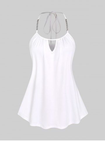 A*****a5Color: LIGHT PINK Size: 4X | US 26-28I love this top! The white under Cami is super cute I love the chain gives it a little bling and the pull over is a stretchy see-through material super comfortable