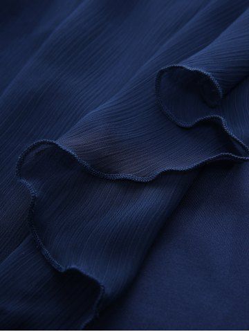 Plus Size Rose Flower Buckle Ruched Butterfly Sleeves Ruffles Asymmetrical Top - Deep Blue - 2x | Us 18-20