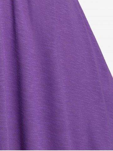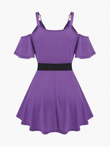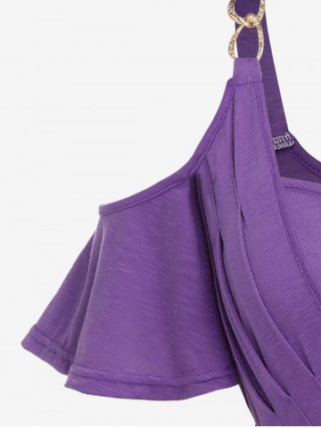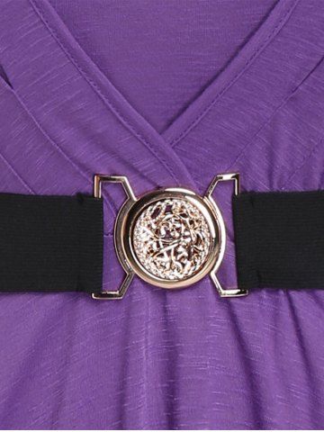 Plus Size Ruched Belted Chains Cold Shoulder Short Sleeve T-Shirt - Purple - 1x | Us 14-16
