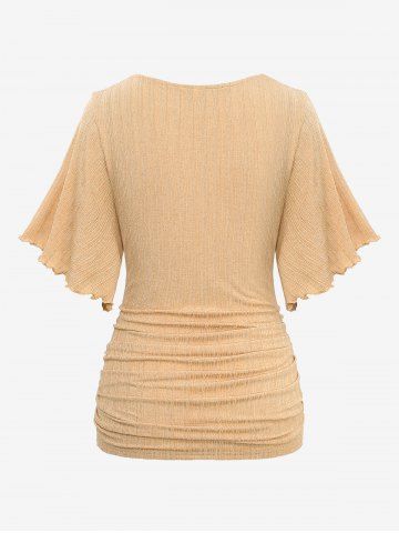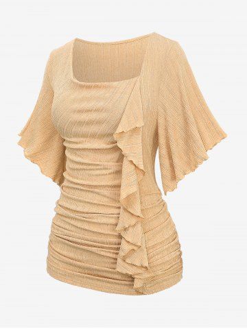 Plus Size Ruffles Asymmetrical Ruched Butterfly Sleeves Textured T-shirt - Golden - 4x | Us 26-28