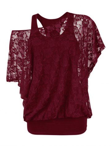 B*****b5Plus Size Skew Neck Sheer Lace Blouse and Racerback Tank TopColor: BLACK Size: 3XLove this two piece top. The lace is really pretty! The material is soft and comfortable, perfect fit, shipped fast and packaged nicely. High quality design and made very well!