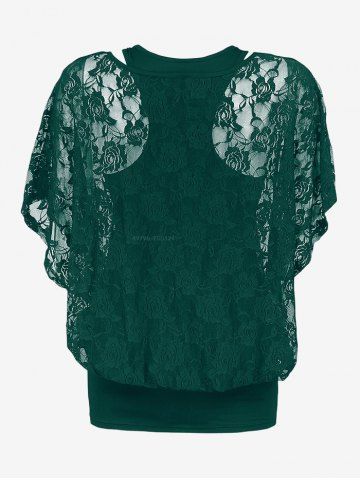 B*****b5Plus Size Skew Neck Sheer Lace Blouse and Racerback Tank TopColor: BLACK Size: 3XLove this two piece top. The lace is really pretty! The material is soft and comfortable, perfect fit, shipped fast and packaged nicely. High quality design and made very well!