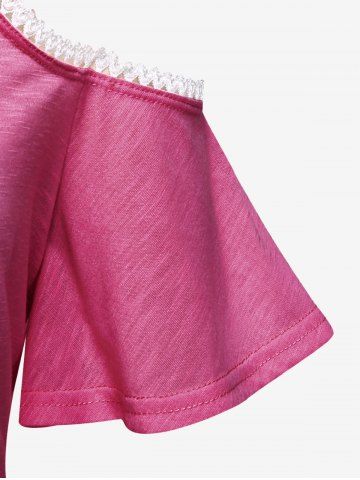 r*****a5Plus Size Solid Color Cold Shoulder Surplice Short Sleeves T-ShirtColor: RED Size: 4X | US 26-28Super Jolie. Après essayage la coupe est parfaite et taille parfaitement.